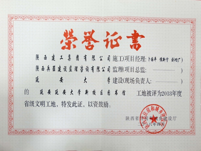 2018年度延安市建設(shè)工程質(zhì)量安全生產(chǎn)先進集體