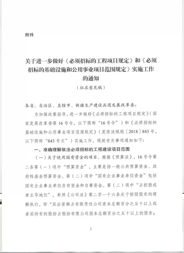 近日,國家發(fā)改委發(fā)布《關(guān)于進(jìn)一步做好<必須招標(biāo)的工程項目規(guī)定>和<必須招標(biāo)的基礎(chǔ)設(shè)施和公用事業(yè)項目規(guī)定>實施工作的通知》(征求意見稿)?!锻ㄖ返闹饕獌?nèi)容圍繞“準(zhǔn)確理解依法必須招標(biāo)的工程建設(shè)項目范圍”、“規(guī)范限額以下工程建設(shè)項目的采購”和“嚴(yán)格執(zhí)行依法必須招標(biāo)制度”展開,其中對于16號令、843號令中的相關(guān)規(guī)定和名詞進(jìn)行了進(jìn)一步的解釋。