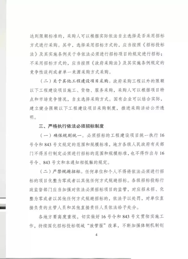 此外,《通知》再次強(qiáng)調(diào),應(yīng)確保規(guī)則統(tǒng)一,地方人民政府不得另行制定依法必須招標(biāo)的范圍和限額標(biāo)準(zhǔn),也不得作出與16號令、843號文和《通知》相抵觸的規(guī)定。