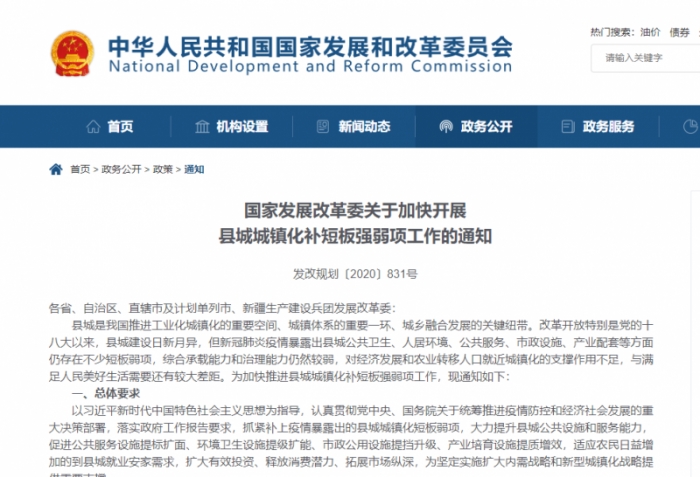 6月3日,國家發(fā)展改革委下發(fā)《關(guān)于加快開展縣城城鎮(zhèn)化補(bǔ)短板強(qiáng)弱項(xiàng)工作的通知》,強(qiáng)調(diào),開展縣城城鎮(zhèn)化補(bǔ)短板強(qiáng)弱項(xiàng)工作,要聚力推進(jìn)17項(xiàng)建設(shè)任務(wù)。圍繞環(huán)境衛(wèi)生設(shè)施提級擴(kuò)能,完善垃圾無害化資源化處理設(shè)施、污水集中處理設(shè)施和縣城公共廁所;圍繞市政公用設(shè)施提擋升級,推進(jìn)市政交通設(shè)施、市政管網(wǎng)設(shè)施、配送投遞設(shè)施、老舊小區(qū)更新改造和縣城智慧化改造。