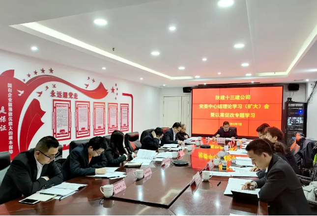 2月7日,陜建十三建公司召開(kāi)黨委中心組理論學(xué)習(xí)(擴(kuò)大)會(huì)暨以案促改專題學(xué)習(xí)會(huì)議。公司領(lǐng)導(dǎo)班子成員、各部室負(fù)責(zé)人等參加會(huì)議。