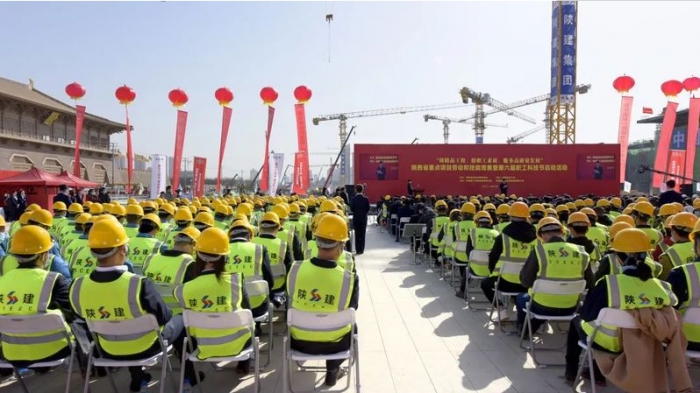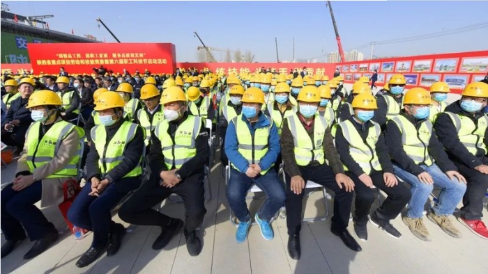3月22日,陜西省“鑄精品工程,提職工素質(zhì),服務(wù)高質(zhì)量發(fā)展”重點(diǎn)項(xiàng)目勞動(dòng)和技能競賽暨陜西省第六屆職工科技節(jié)啟動(dòng)活動(dòng)在陜西建工承建的西安火車站北廣場項(xiàng)目工地舉行。
