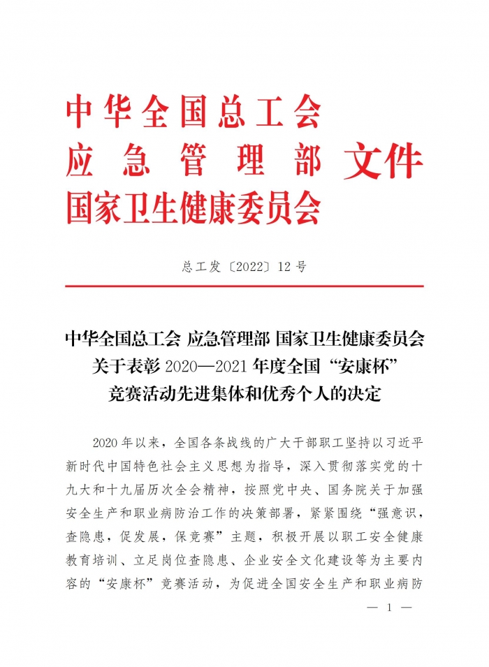 11月2日,全國“安康杯”競賽組委會(huì)在北京召開2020-2021年度全國“安康杯”競賽活動(dòng)表彰暨經(jīng)驗(yàn)交流會(huì)。表彰2020—2021年度全國“安康杯”競賽先進(jìn)集體和優(yōu)秀個(gè)人,集團(tuán)延安南泥灣勞模工匠學(xué)院項(xiàng)目榮獲“優(yōu)勝班組”榮譽(yù)稱號。
