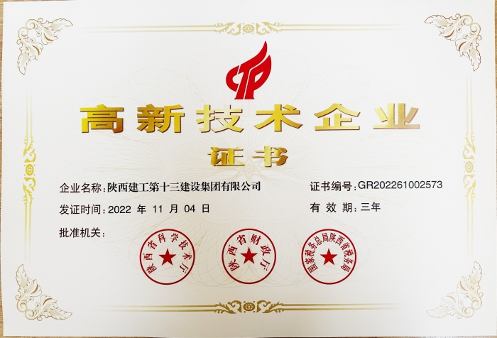 近日,全國高新技術(shù)企業(yè)認(rèn)定管理工作領(lǐng)導(dǎo)小組辦公室發(fā)布了《陜西省認(rèn)定機構(gòu)2022年認(rèn)定的第三批高新技術(shù)企業(yè)備案名單》,陜西建工第十三建設(shè)集團有限公司通過國家級高新技術(shù)企業(yè)認(rèn)定。