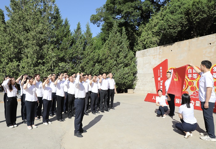 在楊家?guī)X革命舊址,集團(tuán)黨委書(shū)記、董事長(zhǎng)卜國(guó)平帶領(lǐng)全體黨員,面對(duì)黨旗高舉右手,齊肩握拳,再次莊嚴(yán)宣誓。“我志愿加入中國(guó)共產(chǎn)黨……隨時(shí)準(zhǔn)備為黨和人民犧牲一切,永不叛黨?!辩H鏘恢宏的誓詞,聲聲震耳,強(qiáng)烈震撼著在場(chǎng)的每一位黨員,一字一句,神圣而豪邁,充分體現(xiàn)了黨員同志們對(duì)中國(guó)共產(chǎn)黨的無(wú)限忠誠(chéng)和熱愛(ài)。隨后,在講解員的引導(dǎo)下,大家先后參觀中央大禮堂,毛澤東、朱德、周恩來(lái)等老一輩無(wú)產(chǎn)階級(jí)革命家故居,了解了黨的七大的歷史背景、會(huì)議過(guò)程和重要意義,重溫艱苦奮斗、自力更生的延安精神。