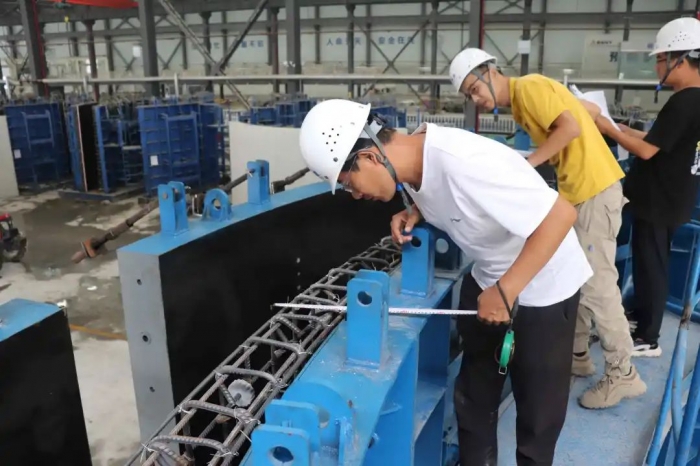 承接任務后,為確保管片順利澆筑,集團新型建材公司統(tǒng)籌部署,科學組織,嚴格按照設計圖紙、技術生產(chǎn)規(guī)范要求,對現(xiàn)場管理人員、勞務隊伍進行了詳細的技術交底,明確了操作規(guī)程;嚴格把控原材進場關,優(yōu)化混凝土配合比,保證管片成品質(zhì)量符合設計要求;加強協(xié)調(diào)管控,嚴格按照施工操作要求完成了模具安裝、鋼筋綁扎、塌落度檢測、混凝土振搗等工作。