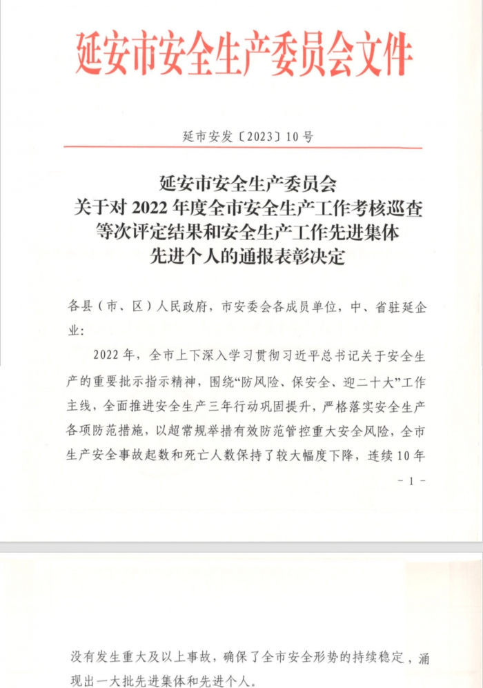 近日,延安市安全生產(chǎn)委員會表彰了2022年全市安全生產(chǎn)工作先進集體和先進個人,陜建十三建集團獲評延安市安全生產(chǎn)先進集體,這是集團連續(xù)四年榮獲全市安全生產(chǎn)先進集體表彰。